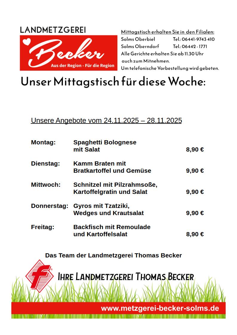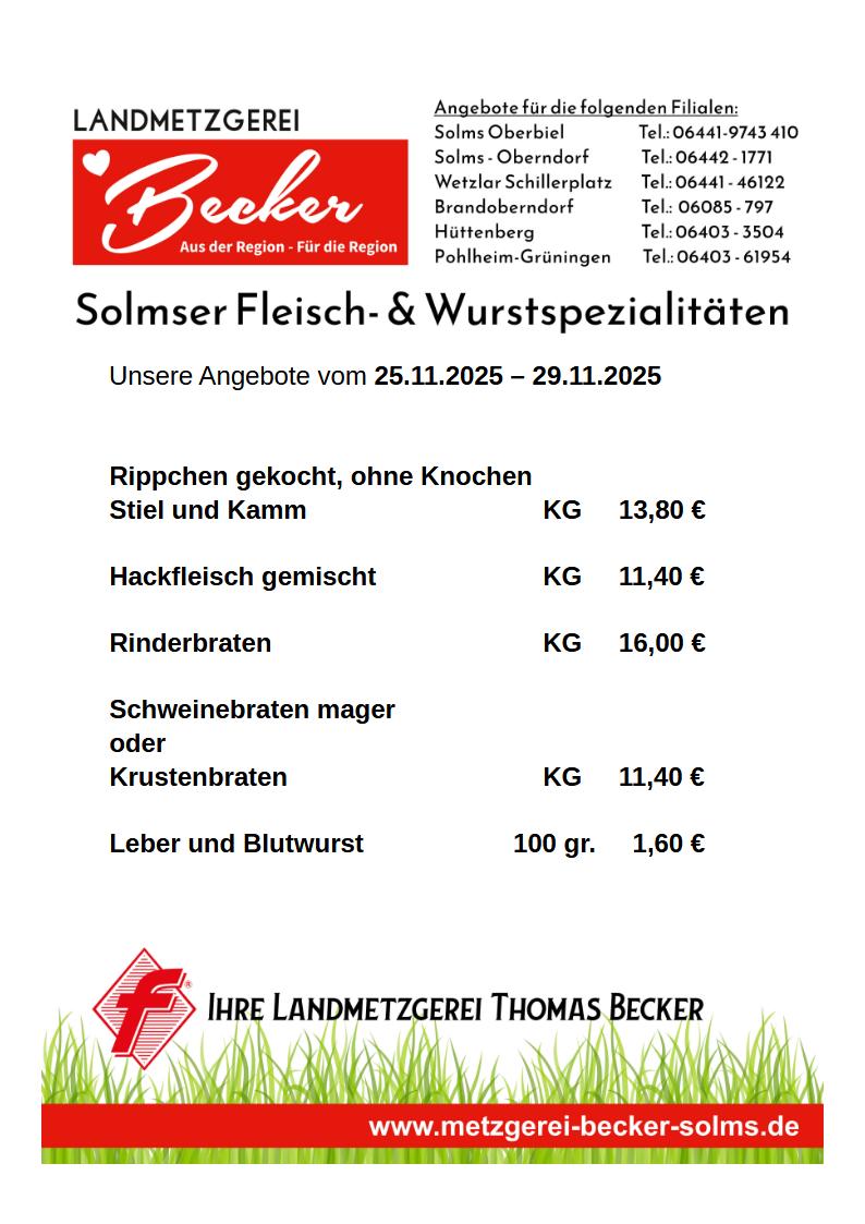 Mittelbiel 5, 35606 Solms - Oberbiel landmetzgerei-becker@web.de